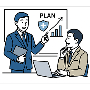 | 初級:決算書ベースの事業保証プラン 中級:退職規定から入る福利厚生プラン 上級:相続・事業承継プラン |
